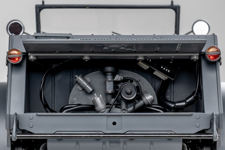 Die Elektronik FMS hat große Anstrengungen unternommen um die Anordnung der Elektronik zu optimieren, damit die Batterie oder der Empfänger keinen Platz im Kofferraum brauchen. Die Kofferraumhöhe des Typ82 wurde so konzipiert, dass ein 20-Liter-Ölkanister (Wasser) untergebracht werden kann. Oder um Waffen, Munition und Lebensmittelvorräte verstauen zu können. Vorräte, Kanister oder Waffen wie das 98K müssen aber separat erworben werden.
