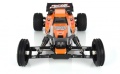 Der etwas über 1 kg schwere Racing Fighter Buggy im Maßstab 1:10 ist gut 40 cm lang und bietet dank des großen Radstands noch mehr Spurtreue bei schnellen Fahrten. Sein schmales, fast röhrenförmiges DT-03 Chassis beinhaltet gut geschützt Elektronik und Mechanik. Einzelradaufhängung, Differenzial, Öldruckstoßdämpfer und die flexible Polykarbonat-Karosserie, die Designelemente klassischer Modelle enthält, sind Serie. Highlight ist der elektronische Fahrregler, der sowohl für Bürsten- als auch Brushless-Motoren geeignet ist.