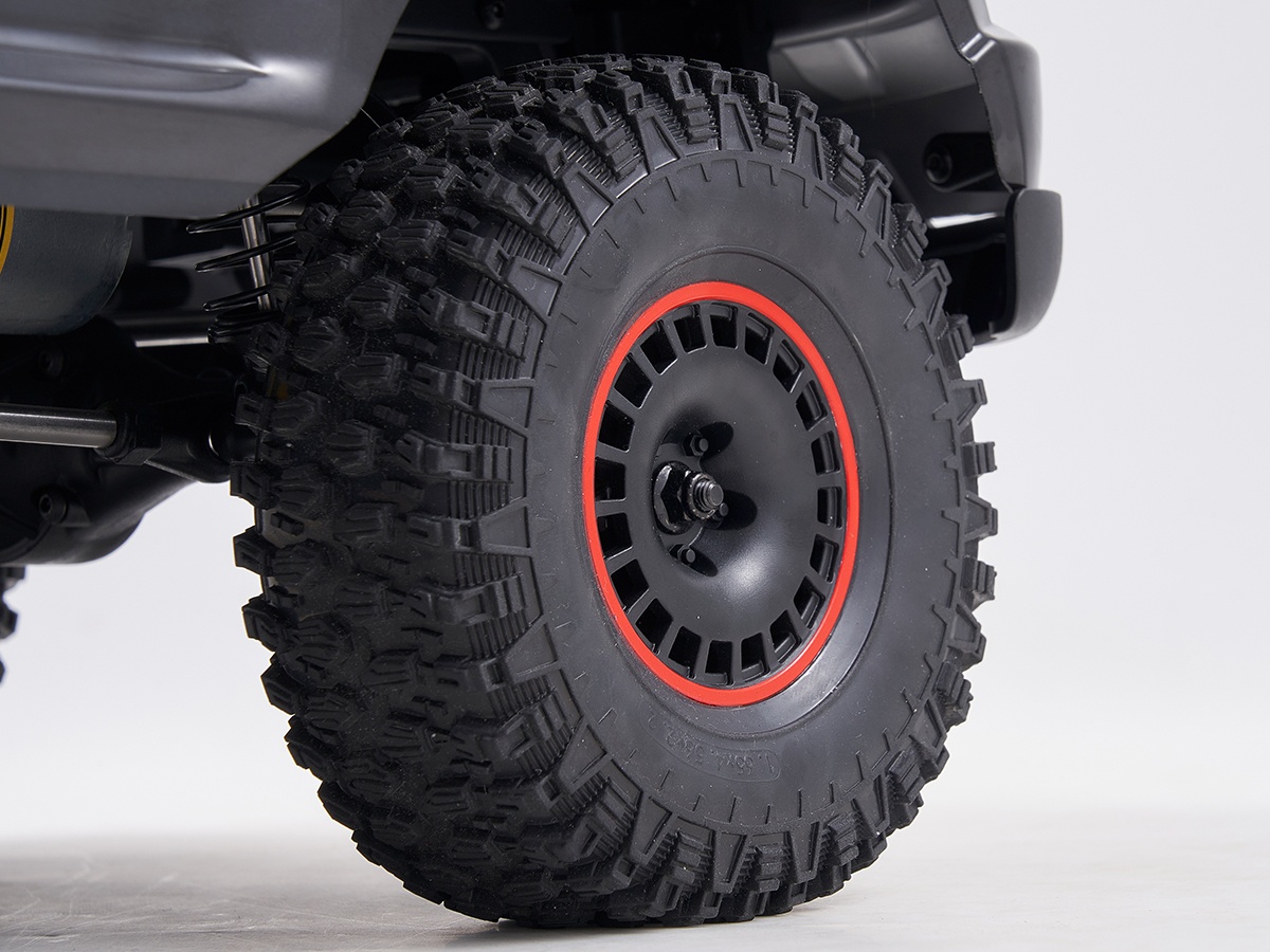 Robustes Chassis mit cleverer Technik Das komplett neu entwickelte LCG-Chassis (Low Center of Gravity) aus verstärktem Nylon bietet eine besonders niedrige Schwerpunktlage - perfekt für schwierige Passagen und steiles Gelände. Die modulare Rahmenbauweise mit Zapfenverbindungen (Tenon & Mortise) sorgt für maximale Stabilität und einfache Wartung. Ein weiteres Highlight: Die portalen Achsen an Vorder- und Hinterachse erhöhen die Bodenfreiheit erheblich und reduzieren gleichzeitig die Belastung der Antriebskomponenten.