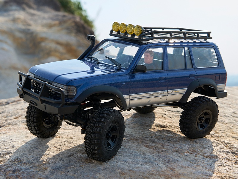 Der FCX18 Toyota LC80 ist ein offiziell lizensierter Crawler im Maßstab 1:18. Der Scaler kommt inklusive 2-Gang-Getrieb, eingebauter Elektronik, integrierter Beleuchtung, Fernsteuerung und Akku fahrfertig aus der Box.