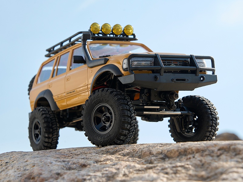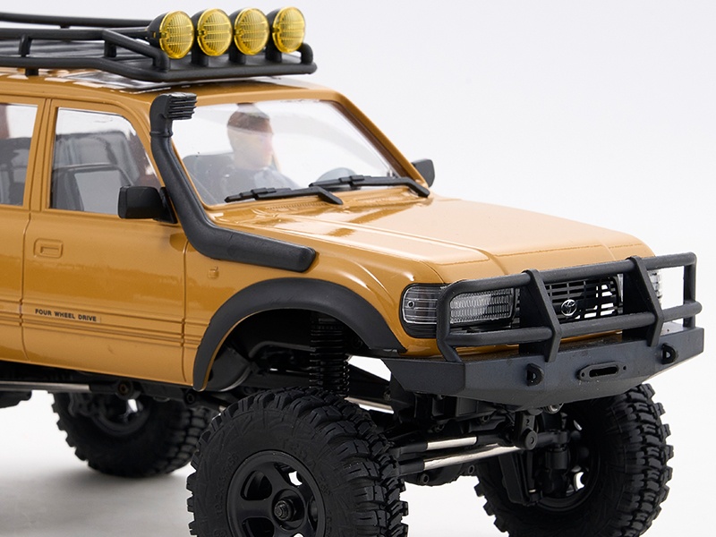 Der FCX18 Toyota LC80 ist ein offiziell lizensierter Crawler im Maßstab 1:18. Der Scaler kommt inklusive 2-Gang-Getrieb, eingebauter Elektronik, integrierter Beleuchtung, Fernsteuerung und Akku fahrfertig aus der Box.