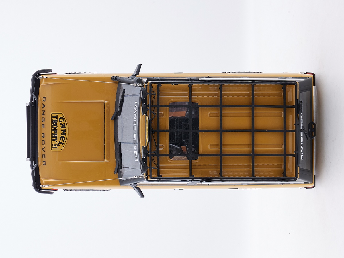 Originalgetreue Optik & Liebe zum Detail Jedes Modell der Camel Trophy Serie basiert auf originalgetreuen Karosserien aus robustem, vakuumgeformtem Polycarbonat. Ausgestattet mit zahlreichen Scale-Details wie: