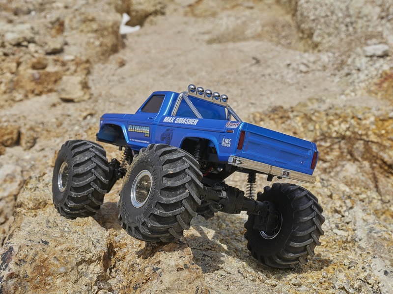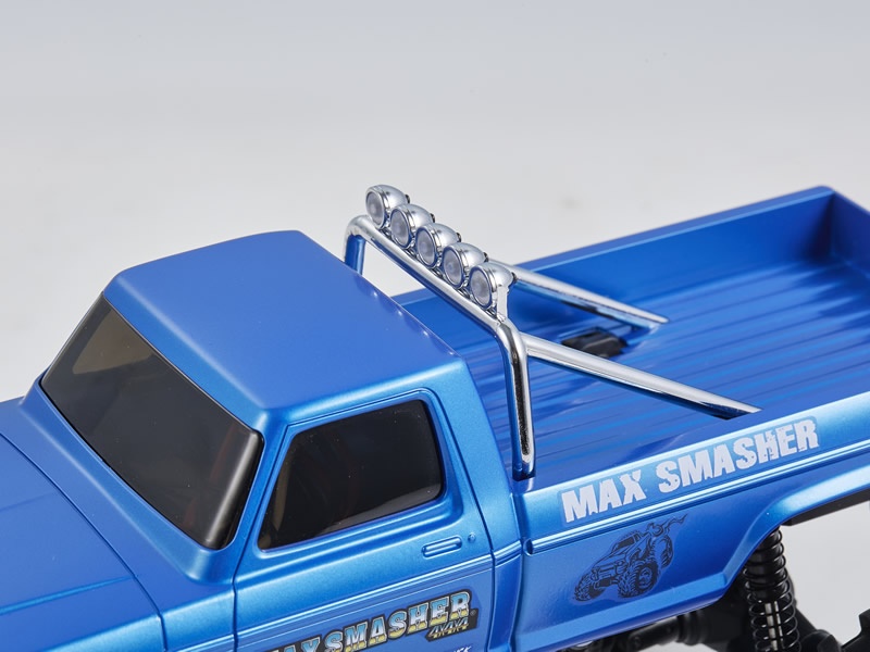 Der FMS SMASHER ist ein Bigfoot-Monster-Truck im Maßstab 1:24 und basiert auf dem FCX24 Chassis. Der SMASHER kommt mit seinem 2-Gang-Getriebe komplett fahrfertig aus der Box – inklusive Akku und Fernsteuerung.Die Karosserie Das Karosseriedesign stellt die Optik eines amerikanischen Pickup-Trucks der ersten Generation dar. Viele Scale-Details sorgen dabei für eine originalgetreue Optik. Zudem verfügt der SMASHER über intelligentes Beleuchtungssteuerungsmodul, mit dem die Scheinwerfer zwischen Fern- und Abblendlicht umgeschaltet werden können, um die Strecke bei Tag und Nacht zu beleuchten. Zur Wartung lässt sich die Hartplastikkarosserie mit wenigen Handgriffen vom Rahmen trennen.