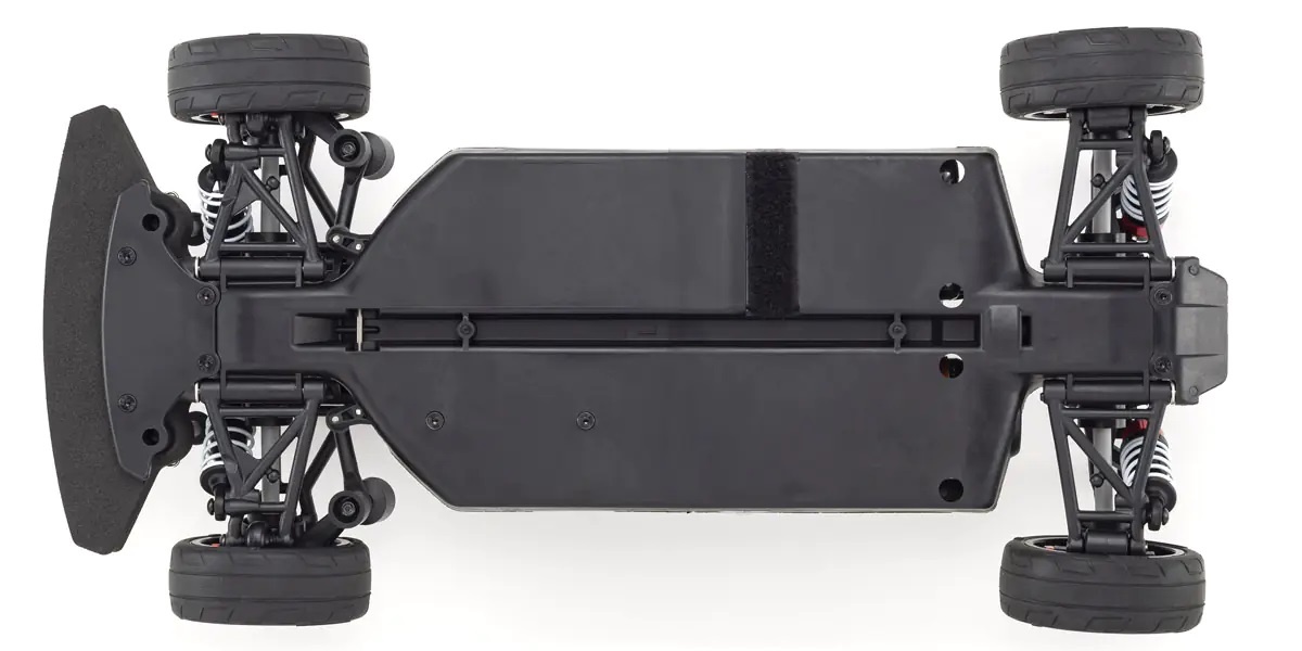 - Das einfache Chassisdesign mit niedrigem Schwerpunkt und Oberdeck verfügt über einen elektronischen Geschwindigkeitsregler und eine Empfängerabdeckung sowie ein einteiliges Getriebe, das die Torsionssteifigkeit und Festigkeit des Hauptchassis optimiert und gleichzeitig das Gewicht durch die Einführung von leichtem, schlagfestem Nylon reduziert.
