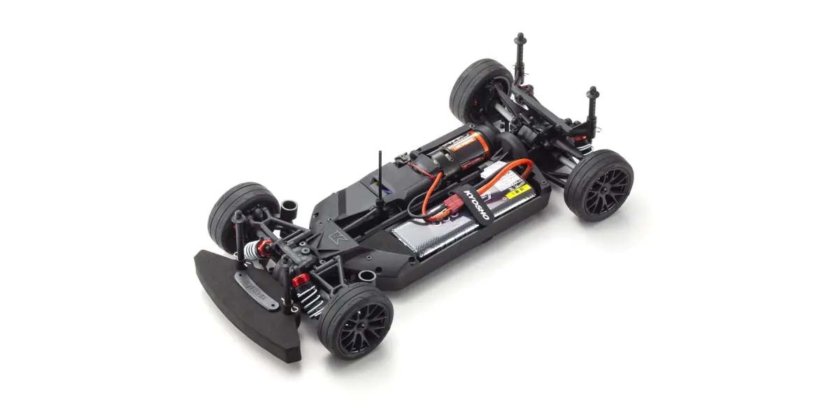 Für den reinen Fahrspaß ist die Kombination aus einer wunderschön nachgebildeten Karosserie und dem Chassis der FAZER-Serie unübertroffen. Kyosho hat seine Standard-Tourenwagen-Chassis genommen und gab es eine vollständige Modell Makeover, die Leistung auf ein neues Niveau entwickelt hat. Ein vereinfachtes Design mit weniger Teilen hat die Wartungseffizienz verbessert und das Gewicht reduziert, während die Festigkeit und Steifigkeit des Kerns durch neue Materialien, Verrippungen und Versteifungen an Front und Heck erhöht wurde. Darüber hinaus sorgt das symmetrische Chassisdesign für eine hervorragende Balance zwischen Vorder- und Hinterachse und eine reaktionsschnelle Kontrolle, unabhängig von der Antriebsquelle. Mit Zahnraddifferentialen vorne und hinten, Öldruckstoßdämpfern und voll kugelgelagerten Lagern können die Fahrer dank der hohen Haltbarkeit und Stoßfestigkeit das volle Potenzial des Fahrwerks ausschöpfen. Bremsscheiben-Radnaben mit zwei verschiedenen Einpresstiefen (0mm, +5mm) sorgen für Kompatibilität mit 190mm und 200mm breiten Karosserievarianten und ermöglichen es, den Radstand durch den Austausch einiger Teile (separat erhältlich) auf 260mm zu verstellen, um die Kompatibilität mit anderen Karosserievarianten im Maßstab 1/10 zu gewährleisten. Das Readyset-Paket kommt komplett montiert und enthält alles außer Ladegerät und Akku für das Chassis, und Batterien für den Sender.