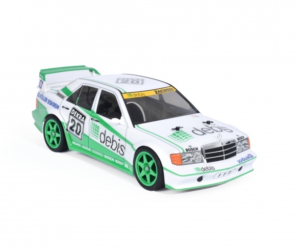 Der Mercedes-Benz 190E in der Version "debis" fuhr in den 90er Jahren in der deutschen DTM Rennserie. Das TAMIYA-Modell im Maßstab 1:10 auf dem TT-01E Chassis hat einen kräftigen Torque-Tuned Elektromotor und Allradantrieb. Diese Kombination sorgt für schnellen und unkomplizierten Fahrspaß. Die robuste und detailgetreue Polykarbonatkarosserie samt Dekorbogen und ein elektronischer Fahrtenregler sind perfekt für RC-Hobbyisten geeignet.