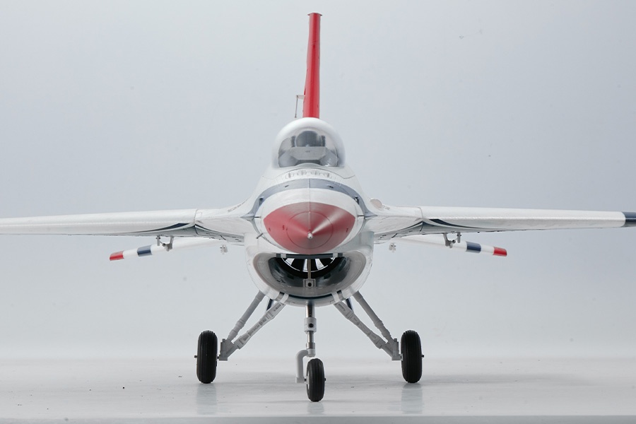 Das Modell Die neu geformte F16-Modell von FMS überzeugt nicht nur durch größere Abmessungen, schlankere Konturen und präzisere Details, sondern auch durch eine deutliche Verbesserung der Realitätsnähe.