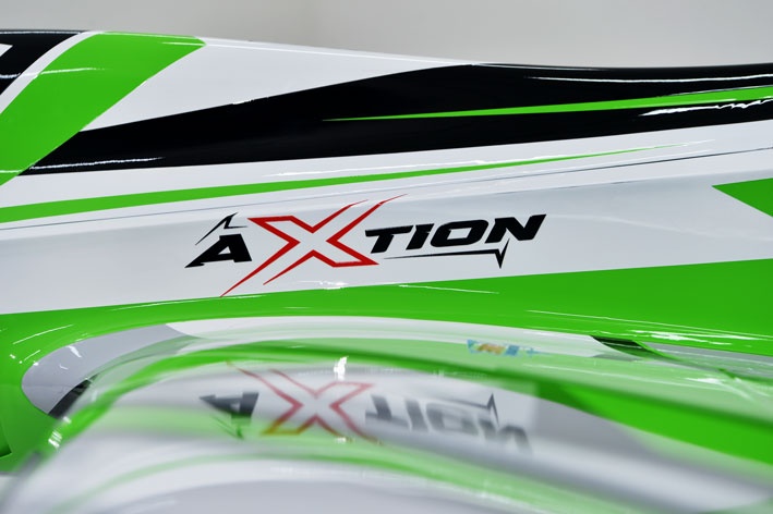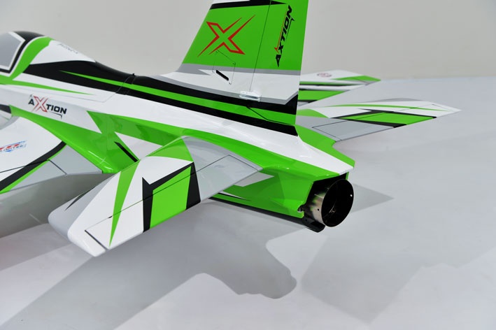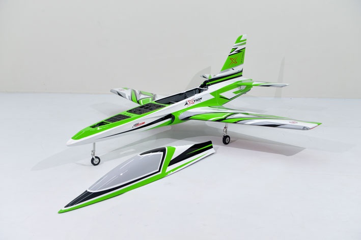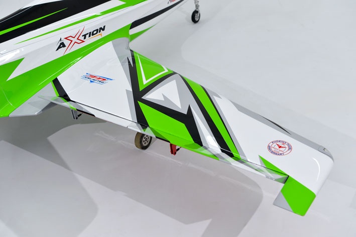 Turbinenantrieb und umfangreiche Ausstattung Der Axtion ist ausgelegt für Turbinen von 130–240 N Schub und bietet bereits ab Werk eine umfangreiche Ausstattung. Elektrische Einziehfahrwerke mit gefederten Aluminiumbeinen, Bremsanlage, Schubrohr sowie Schubvektorsteuerung sind bereits integriert. LED-Beleuchtung und Steuerbox sind ebenfalls im Lieferumfang enthalten.