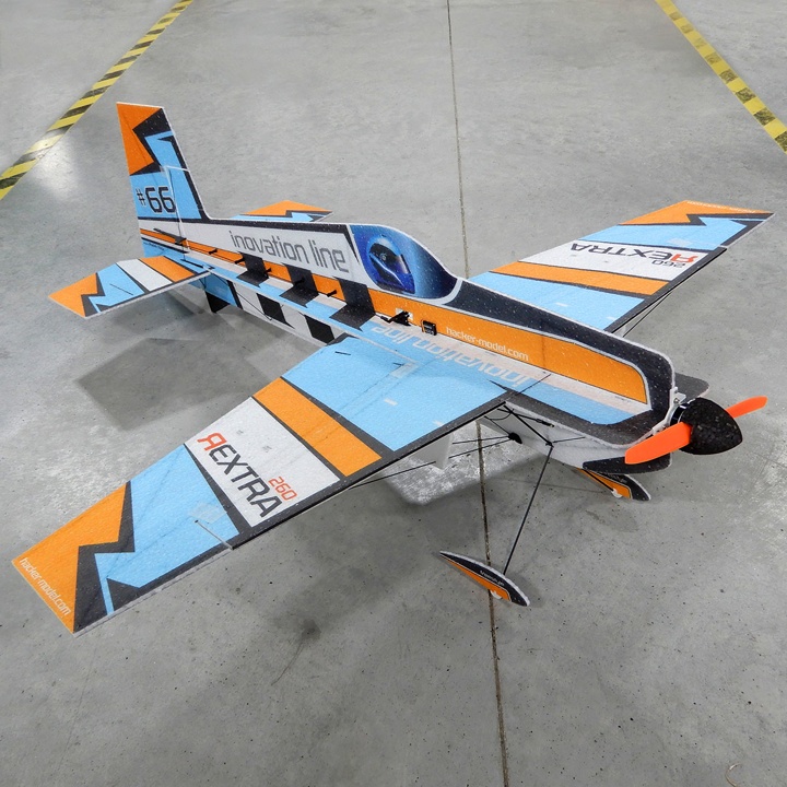 Die REXTRA 260 von HACKER ist ein Shockflyer mit 900mm Spannweite. Das Modell wurde in Zusammenarbeit mit dem Top-Kunstflugpiloten Radek Rája speziell für den freien Indoor-Flying bei den Weltmeisterschaften 2025 in der Schweiz konzipiert. Die Kombination aus perfekt abgestimmten Größen und Verhältnissen aller Oberflächen und optimierter Carbon-Belastung sorgt für die perfekte Steifigkeit des gesamten Modelldesigns, was zu vorhersehbarem Verhalten und genauer Kontrolle des REXTRY 260 bei extremen Kunstflugmanövern beiträgt. Große Ruderflächen zusammen mit dem Pendelleitwerk sorgen für maximale Kontrolle des Modells