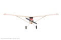 Der Bausatz enthält: Sämtliche Bauteile aus gelasertem Holz, Kleinteile, Anlenkungen, Bespannpapier für Leitwerke, Fahrwerk mit Räder, 3D-Bauanleitung.