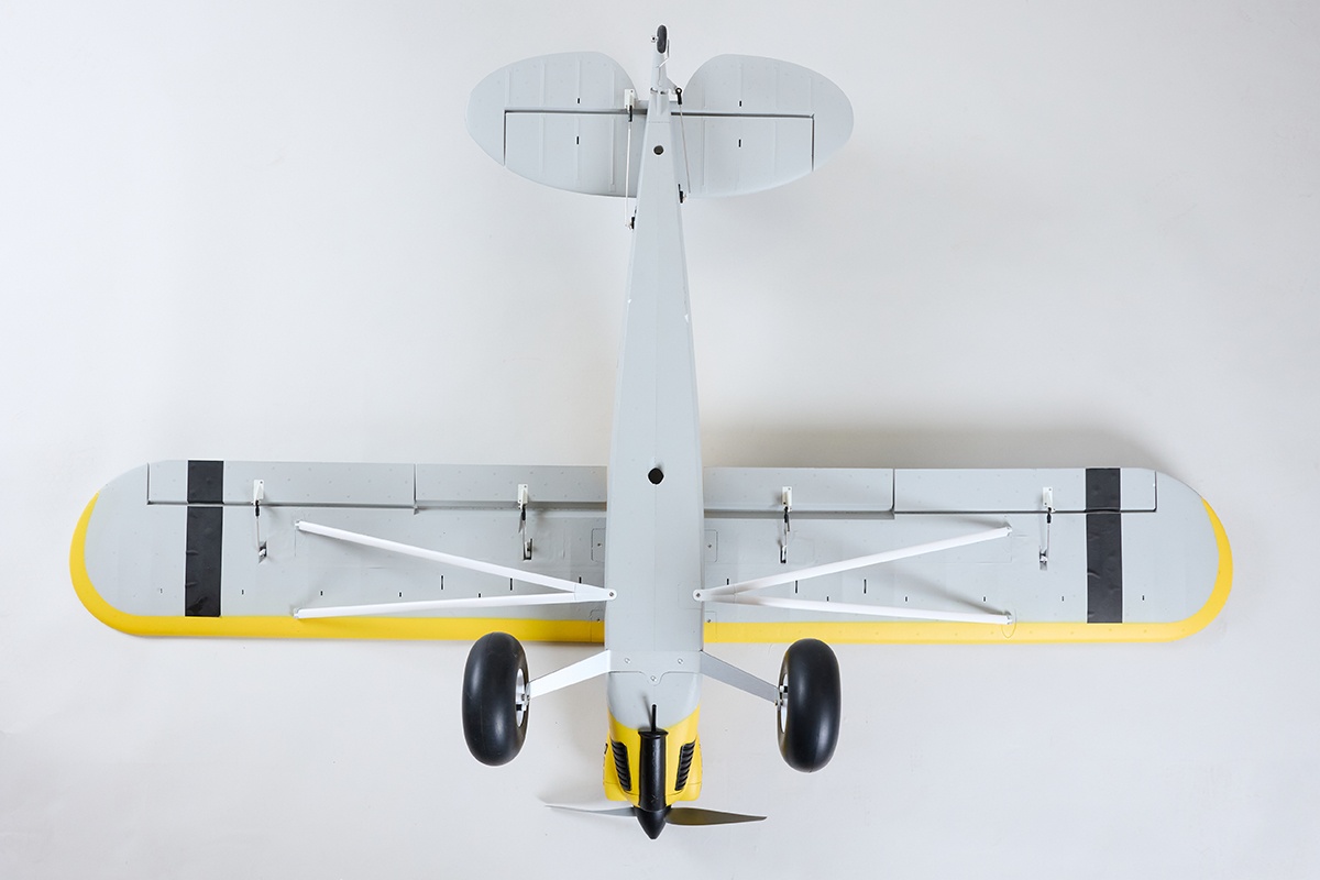 STOL-Eigenschaften Die XCub ist das perfekte STOL-Flugzeug. Dank der großen Landeklappen und dem stabilen Fahrwerk lässt sich das Flugmodell hervorragend auf extrem kleinen und kurzen Flächen starten und landen. Durch die großen Ballonreifen lässt sich die XCub auch auf unebenem Terrain mühelos starten und landen.