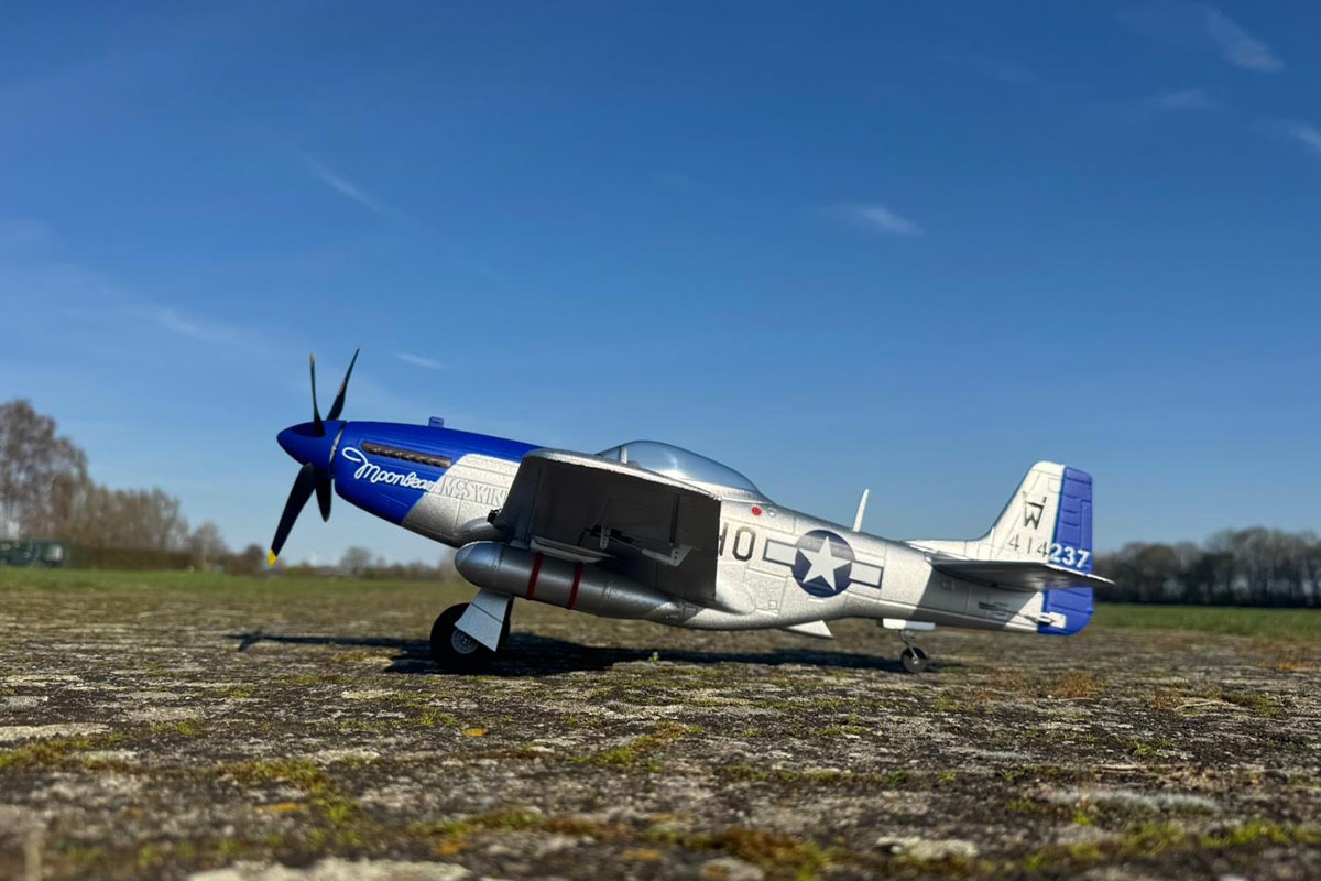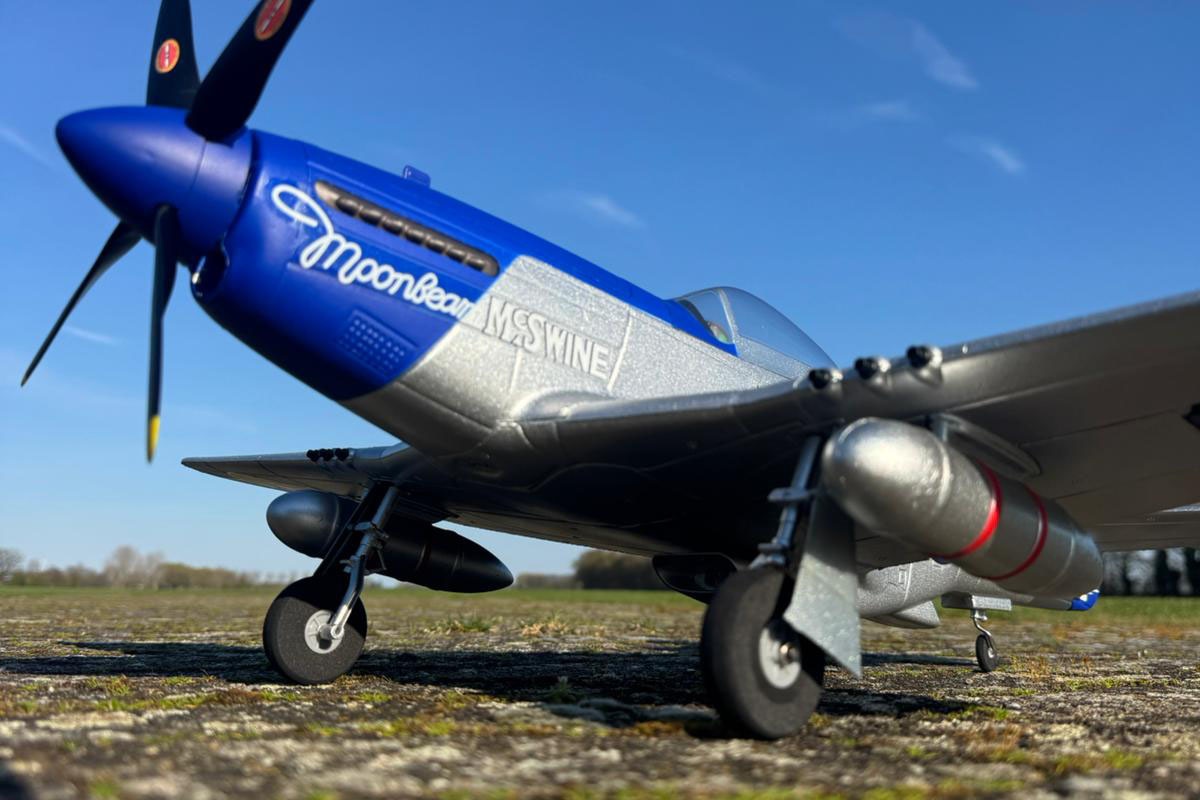 Die P-51 Mustang von DERBEE ist ein originalgetreuer Mini-Warbird mit 75cm Spannweite. Das Modell ist sehr leicht und kompakt und eignet sich daher hervorragend für Flüge auf engen Flächen.