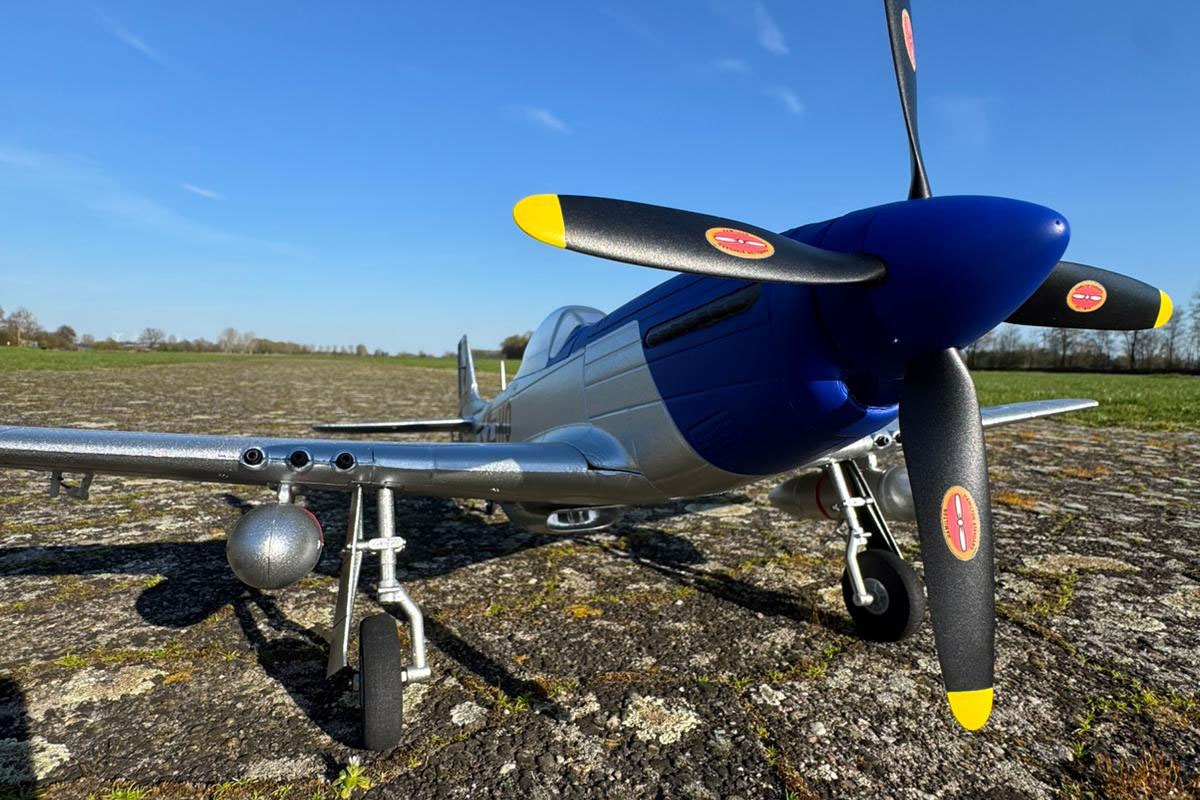Eigenschaften • stabile und leichte EPO-Hartschaumkosntruktion • mit wenigen Handgriffen flugfertig montiert • leistungsstarker 1200KV Brushless-Motor und 20A Regler eingebaut • 4x 9g Servos fertig eingebaut • zahlreiche Scale Details wie Nieten, Bewaffnung, Motoren-Attrappe, u.v.m. • fertig lackiert und beklebt • bemalte Pilotenfigur eingebaut • stabiles Fahrwerk • abnehmbare Haube • inklusive 4-Blatt-Propeller • Angelenktes Spornrad • erhältlich in silber/blau oder silber/gelb