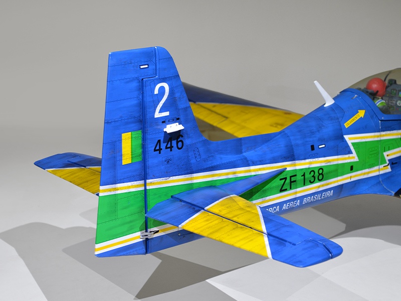 Die Tucano von Phoenix ist ein originalgetreues, militärisches Trainingsflugzeug mit 2,40m Spannweite. Das Modell ist in einer extrem leichten und hochfesten Holzbauweise konstruiert und ist ausgelegt für Elektro- oder Verbrenner-Antriebe. Die großen Ruderflächen und das aerodynamische Design sorgen für einen hohen Geschwindigkeitsbereich, langsame Landungen und präzise Kunstflugeigenschaften.