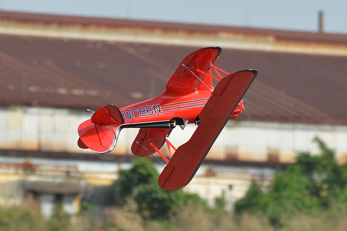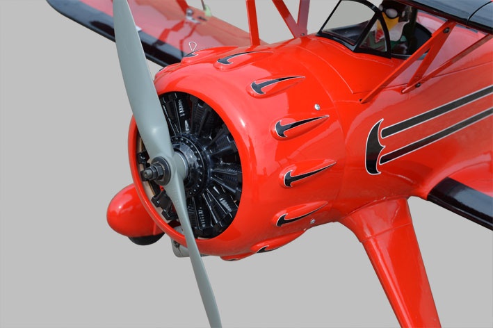 Die Waco F5C ist ein Doppeldecker deren Blütezeit die 30er & 40er Jahren waren. Das Modell zeichnet sich aus durch die vorbildgetreue Optik und das detailierte Cockpit. Die Waco F5C ist wendig und auch bedingt kunstflugtauglich. Rollen, Loopings und Rückenflüge sind problemlos möglich. Die Motorhaube ist aus GFK gefertigt und fertig lackiert. Die Waco f5C ist komplett aus Holz hochwertig aufgebaut und mit Folie bespannt. Mit den empfohlenen kraftvollen Motoren erreicht das Modell beeindruckende Flugleistung. Es lässt sich dynamisch fliegen und hängt gut am Gas.