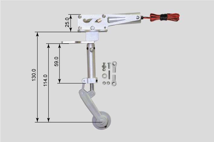 Elektrische Einziehfahrwerke haben gegenüber den mechanischen oder pneumatischen Fahrwerken einen großen Vorteil: denn der Servomotor ist bereits fertig im Fahrwerk integriert. Das elektrische Fahrwerk wird mit der Control-Box direkt am Empfänger angeschlossen werden.
