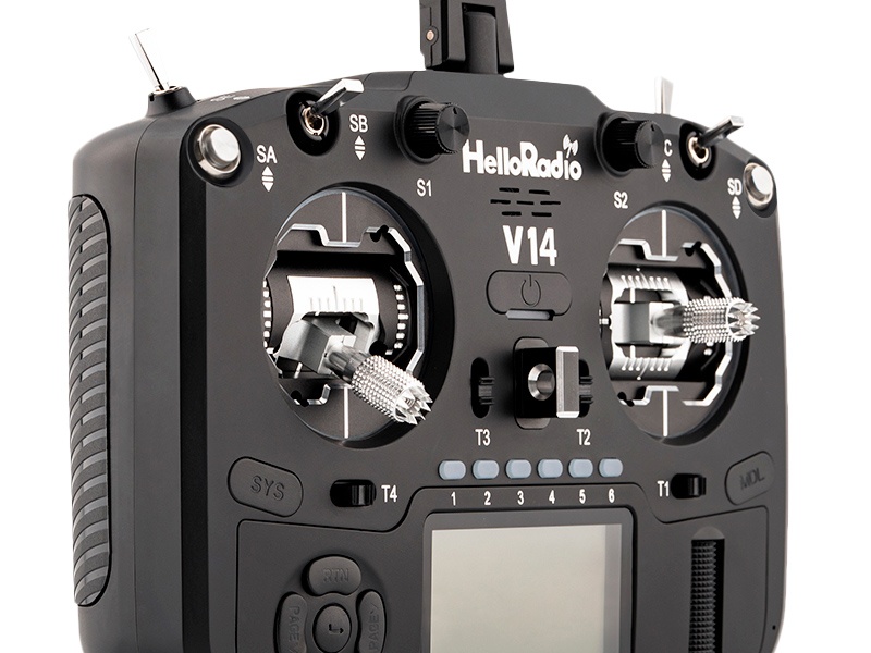 Die HelloRadio V14 MAX Fernsteuerung vereint modernste Technologie mit durchdachtem Design und bietet dir volle Kontrolle. Ausgestattet mit dem Open-Source-System EdgeTX, einem OLED Display und einem innovativen KI-Sprachassistenten, eröffnet sie völlig neue Möglichkeiten. Intelligente Sicherheitsfunktionen, flexible Modulkompatibilität und eine präzise Bewegungssteuerung sorgen dafür, dass du jederzeit die volle Kontrolle behältst. Als weiteres Highlight lassen sich die LEDs um die Gimbals in verschiedensten Farben programmieren