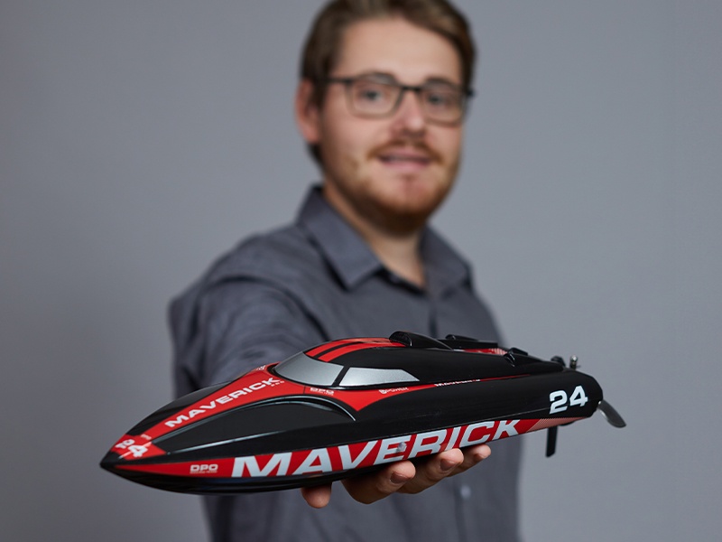 Die MAVERICK PRO von D-Power ist ein ferngesteuertes Elektro-Rennboot, dass kraftvolle Brushless-Power und einfaches Handling zu einem niedrigen Preis bietet. Angetrieben von einem leistungsstarken, wassergekühlten Brushless-Antrieb erreicht das Boot Höchstgeschwindigkeiten von über 45 km/h. Als Highlight verfügt die MAVERICK PRO über eine Selbstaufrichtungs-Funktion, mit der sich ein gekentertes Boot automatisch wieder aufrichten lässt. Das Speedboot wird als fahrfertiges RTR-Modell inklusive eingebauter Bordelektronik und 2-Kanal Fernsteuerung geliefert.