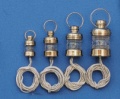 Messing vernickelt, verglast, mit 6 V-Birne hell, für verschiedene Einsatzmöglichkeiten: mit Tragbügel, als Lampe auf Mast (Messingrohr mit Gewinde zum leichten Auswechseln der Glühbirne) als Lampe auf Tragearm zur Befestigung an Mast, Steuerhaus etc. (zum Abwickeln des Messingrohres sollte die abzubiegende Stelle auf einer Flamme heiß gemacht werden, um einen gleichmäßigen und engen Radius zu erzielen).